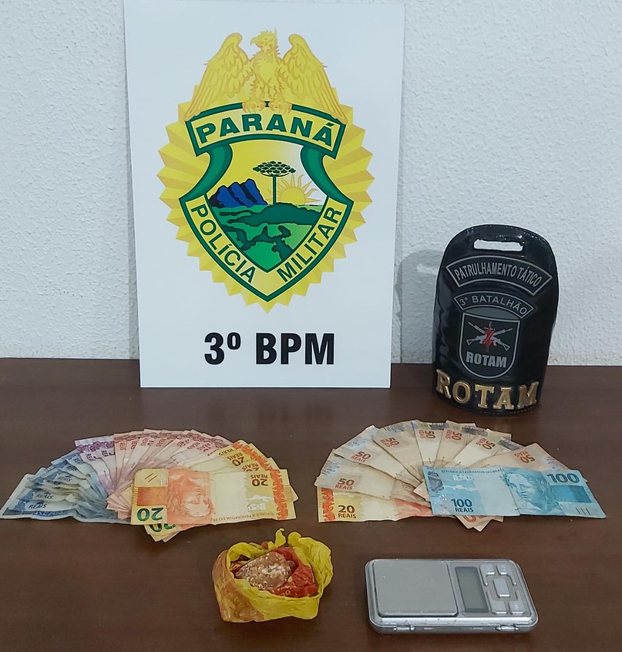Equipe ROTAM em patrulhamento pelo bairro alto da Glória avistou um individuo que a equipe tem conhecimento que estava praticando trafico de drogas, realizada a abordagem foram obtidos os seguintes resultados: