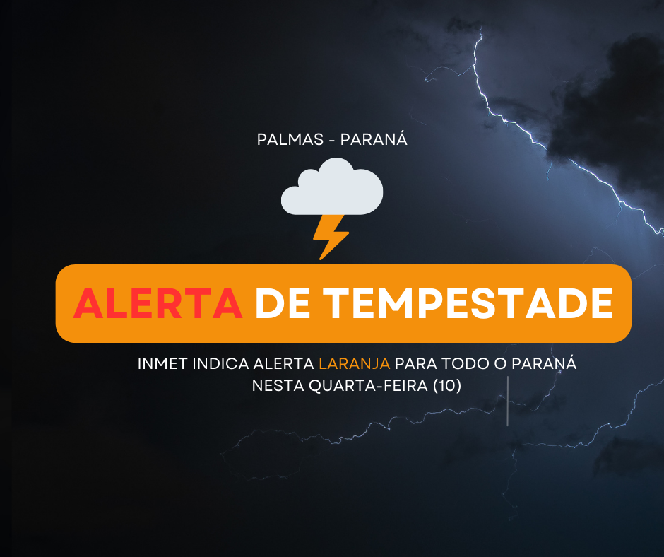 O Instituto Nacional de Meteorologia (Inmet) emitiu um alerta laranja para os estados do Paraná, Santa Catarina e Rio Grande do Sul, indicando um alto risco de tempestades. O alerta abrange a quarta-feira (10) e a quinta-feira (11), com previsão de condições meteorológicas adversas em toda a extensão desses estados.