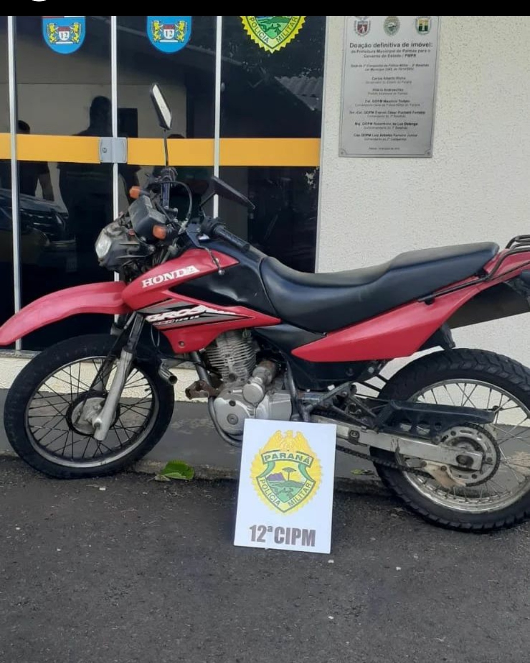 APÓS DENÚNCIA ANÔNIMA, POLÍCIA MILITAR RECUPERA MOTOCICLETA FURTADA EM PALMAS-PR.