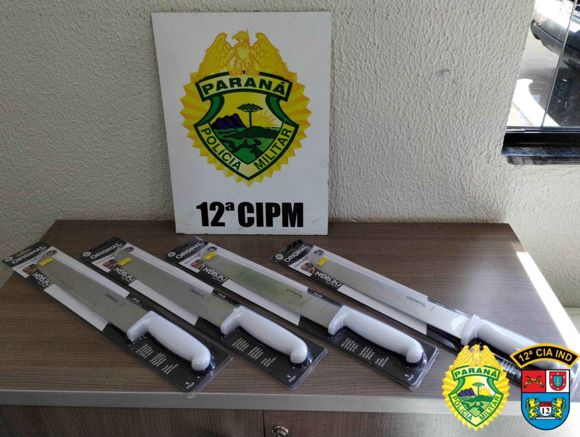 Diante das informações, os soldados Zwicker e Rocha, utilizando a viatura LR0963, iniciaram diligências nas proximidades da Av. Vereador Amazonas Fonseca. Após intensa busca, a equipe obteve êxito em localizar dois indivíduos em posse de quatro facas, que foram identificadas como os itens furtados.