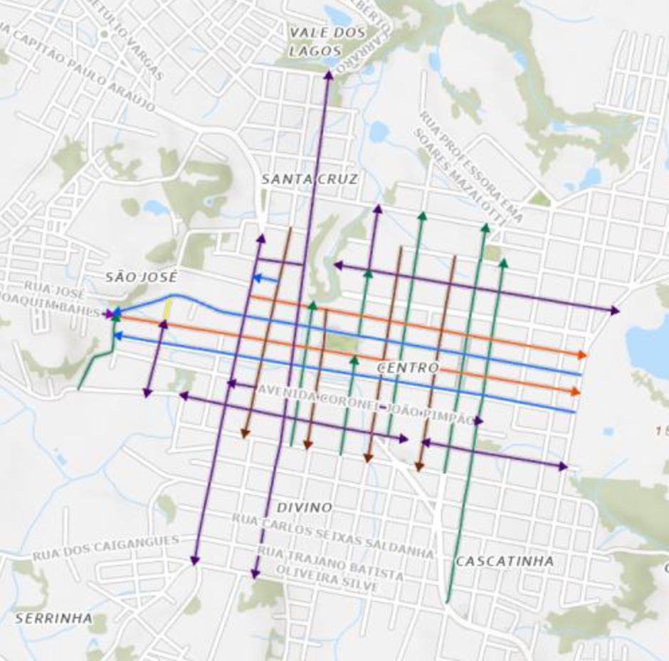 Agora a proposição do Plano de Mobilidade alterando sentidos das ruas e tornando sentidos únicos várias ruas.
