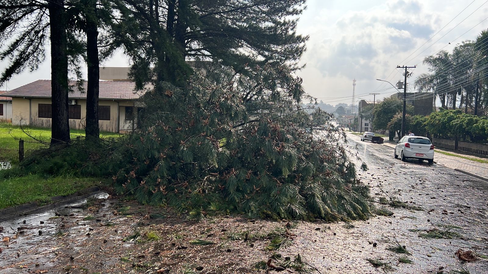 Palmas, Paraná – Na tarde de sexta-feira, os moradores de Palmas, no estado do Paraná, foram surpreendidos por uma tempestade violenta que trouxe fortes ventos e chuva intensa, causando estragos significativos em toda a cidade além de falta de energia eletrica.