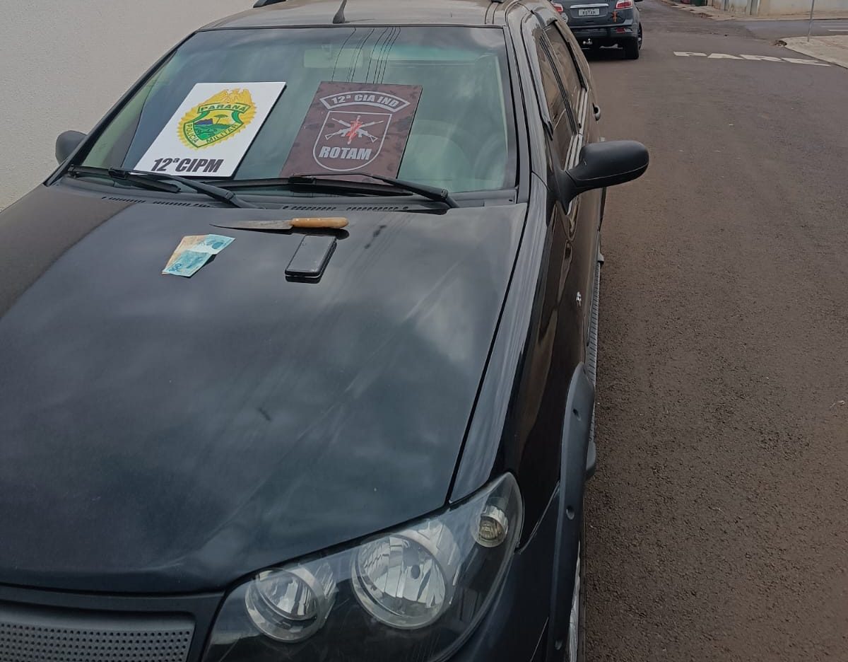 Diante das descrições a equipe rapidamente iniciou diligências e logrou êxito em localizar e abordar o veículo Fiat Pálio no bairro Jardim Brasília em Clevelândia-Pr, dado voz de abordagem e em busca pessoal nada de ilícito encontrado, em busca no interior do veículo foi localizado uma faca, indagado o autor sobre onde estaria a vitima, o mesmo relatou que juntamente com um amigo sequestrou sua ex companheira, na sequência lhe agrediu e desovou o corpo sem vida na beira da rodovia próximo ao município de Coronel Freitas.