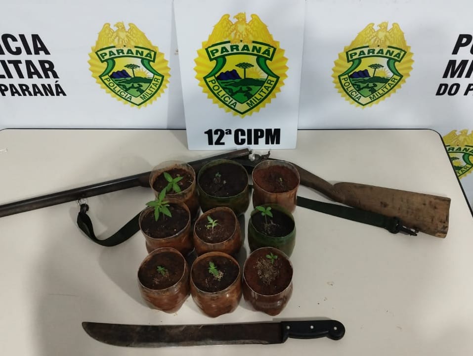 HOMEM É PRESO POR POSSE IRREGULAR DE ARMA DE FOGO E NOVE PÉS DE MACONHA.