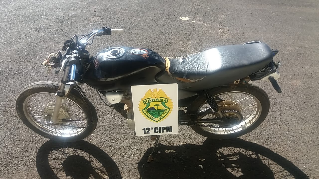 Na data 09/04/2023 por volta das 12h45min, a Polícia Militar recebeu uma denúncia que no bairro Palmas 2, teria uma motocicleta com alerta de furto estacionada em uma residência. Chegando no referido endereço o proprietário da motocicleta que já estava no local, relatou que recebeu uma ligação que sua motocicleta teria sido furtado por um masculino de 24 anos, e o denunciante indicou o local em que a motocicleta se encontrava.
