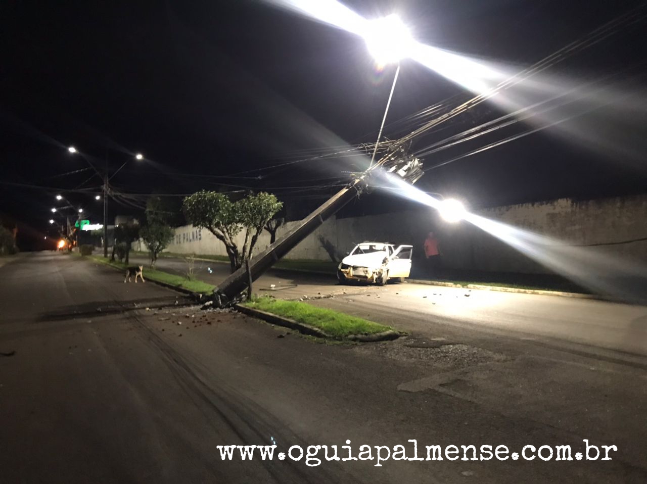 Motorista derruba poste na Av Coronel José Osório, em Palmas.