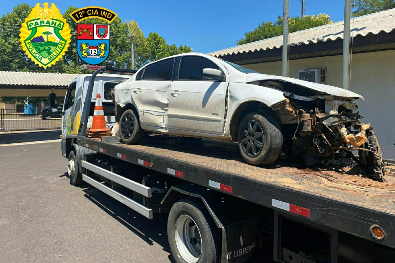 Após receber a solicitação sobre possível roubo de veículo ocorrido na Unidade Básica de Saúde do bairro Eldorado, do município de Palmas, a Polícia Militar realizou rápido acolhimento das vítimas e levantamento de informações, diante do que, com o auxílio das imagens dos sistemas de monitoramento por câmeras instaladas nos municípios de Palmas e de Clevelândia, o veículo foi localizado, o qual havia capotado durante a fuga pela rodovia que liga Palmas a Clevelândia.