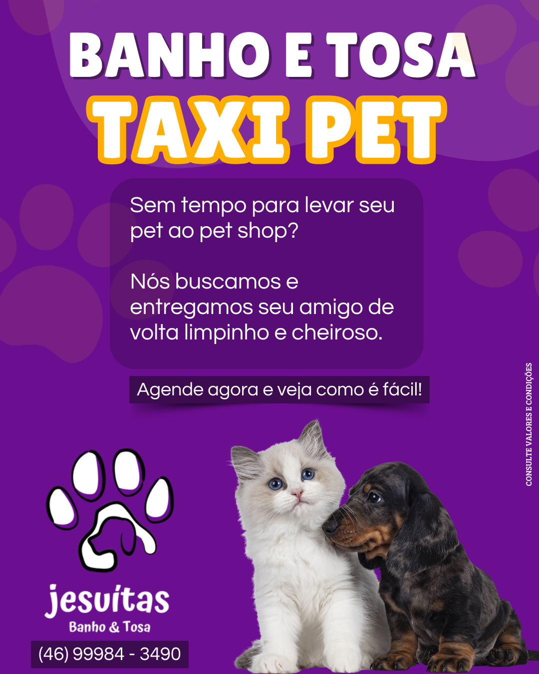 10/10/2024 Post instagram banho e tosa delivery petshop amarelo roxo Compartilhar: Navegação de Post Anterior Postagem anterior PCPR prende suspeito de homicídio e ocultação de cadáver em Mangueirinha