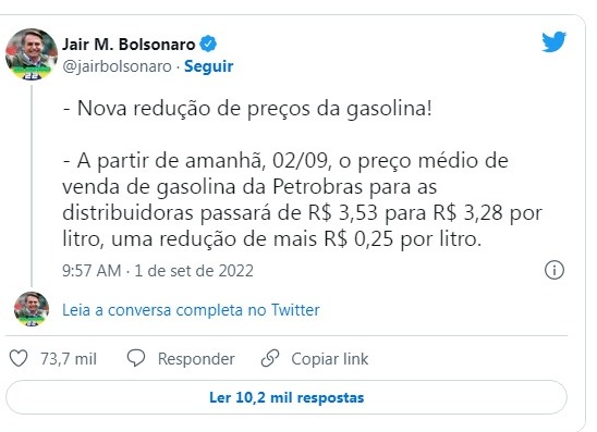 01/09/2022 WhatsApp Image 2022-09-01 at 15.40.15 Compartilhar: Navegação de Post Anterior Postagem anterior Petrobras anuncia redução de R$ 0,25 no preço da gasolina Deixe um comentário Cancelar respostaSeu endereço de email não será publicado. Comente Nome E-mail Local na rede Internet Salvar meus dados neste navegador para a próxima vez que eu comentar.