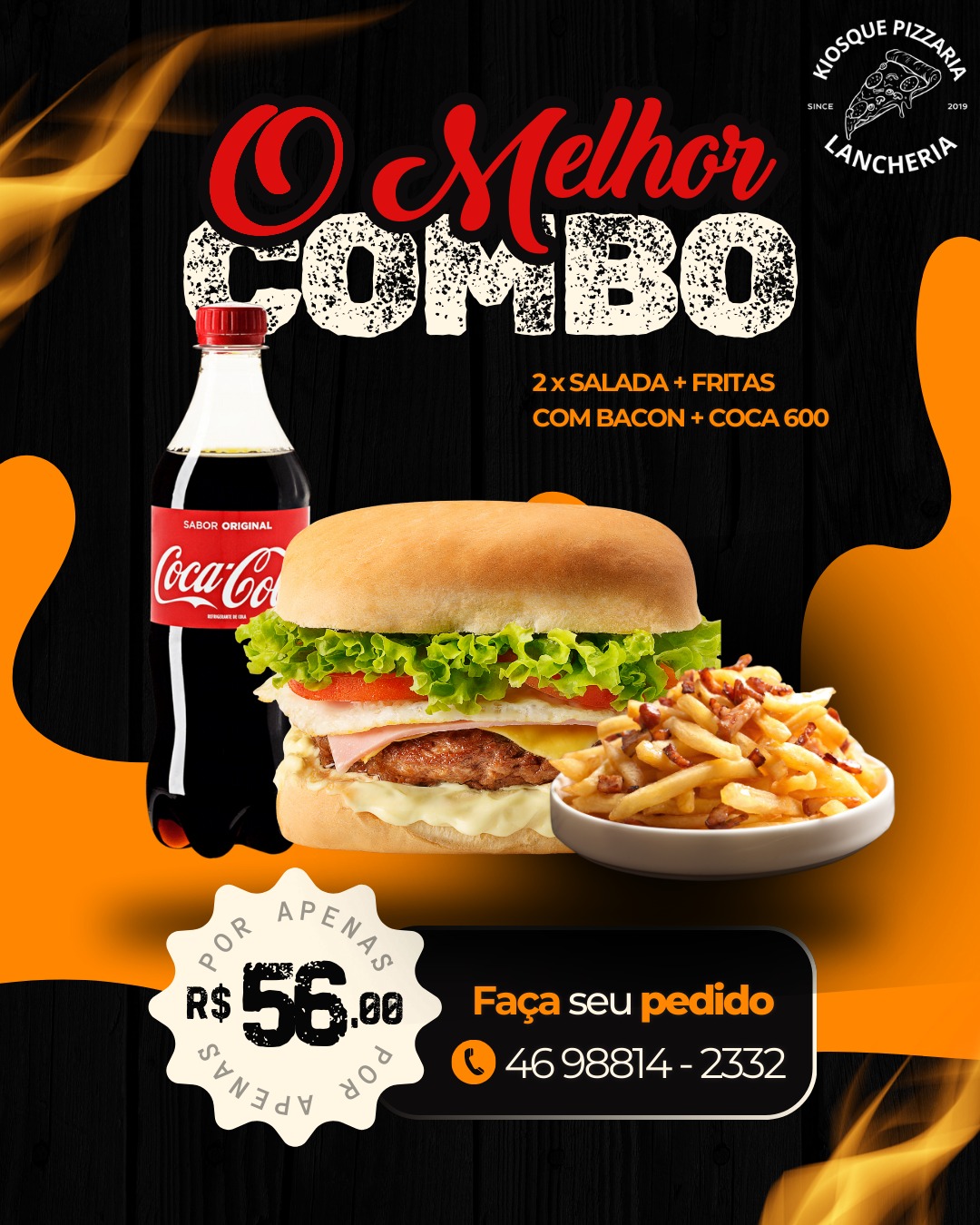 Post Instagram combo de hambúrguer rústico preto e laranja